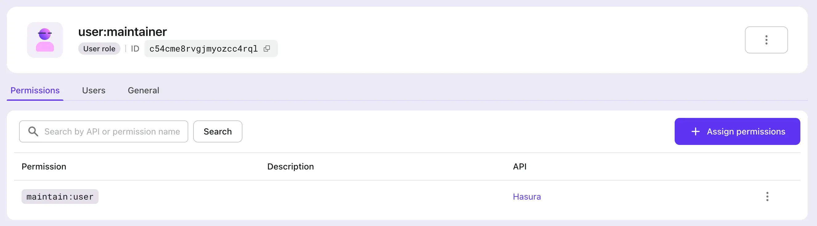 Let's start with a simple example. Suppose a user already has two APIs in Hasura, GET /user and PATCH /user, corresponding to two roles: user:reader and user:maintainer, respectively.